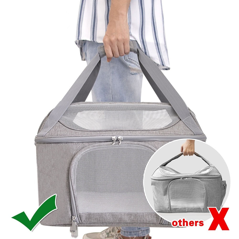 The Dog Breathable Backpack is designed with four mesh windows and a venting hole to provide excellent ventilation and visibility for your pet. The window allows your pet to stick their head out and you can easily observe them. Front and top openings allow your pets to enter and exit easily, and you can cover the panels to protect them from direct sunlight in the summer and keep them warm in the winter.