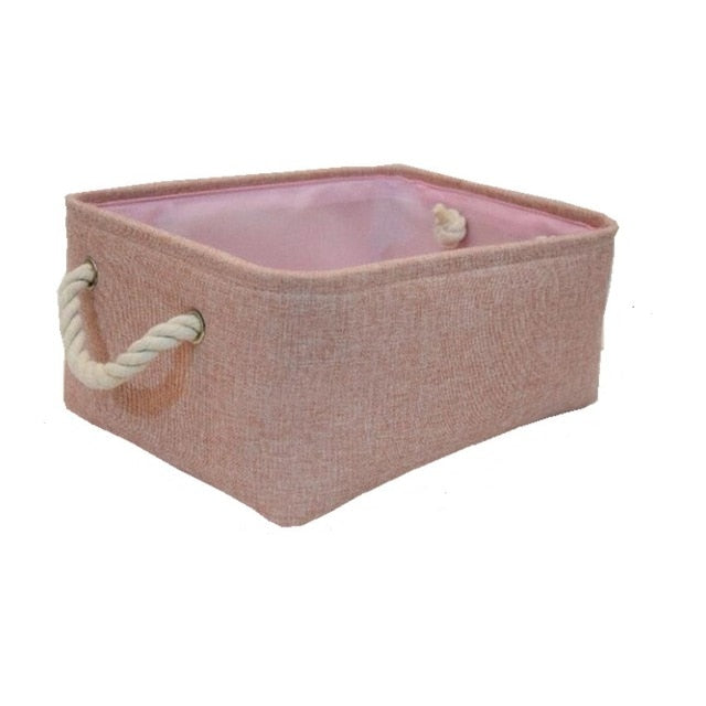 This Storage Basket is made of strong natural linen, cotton lining, and drawstring closure, which is very environmentally friendly and strong. For most home racks or closet storage, it can maintain good rigidity, simple design, and neutral colors, just fold the trash can and store it when not in use.