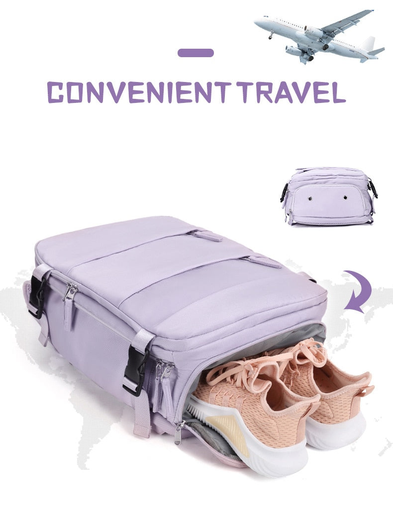 This Multifunctional Waterproof Bag is made of durable polyester, has good air permeability and heat dissipation with two padded shoulder belts, offers lightweight carrying and strength mounting, relieves shoulder pressure, and maintains cool when wearing for a lengthy time. And it's hard, solid, and doesn't fade. A different shoe compartment can help you carry and keep your shoes better in your travel bag.
